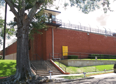 My own environment, however, was a bit different — sitting in the basement of the Baptist Church having dinner with Campus Crusade students who attend Sam Houston State, that other institution in town. Though the church is 100 feet from the prison walls pictured above, the two seem worlds apart.